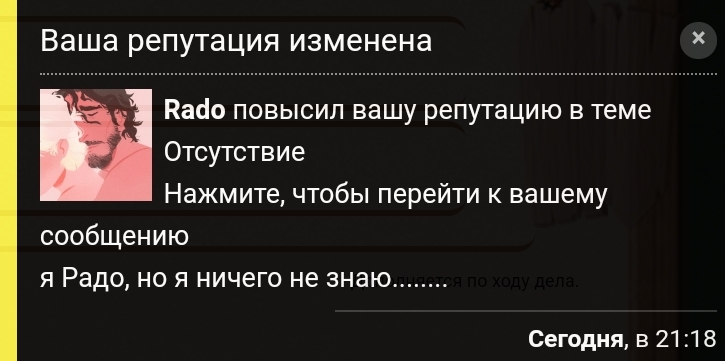 Bahamut Erskine повысил вашу репутацию за сообщение в теме Комментарий к комментарию: Вы разбиваете мне сердце